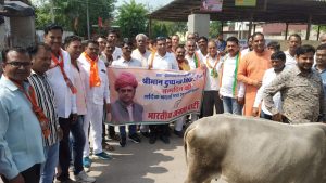 बारां 11 सितंबर| बारां- झालावाड़ सांसद दुष्यंत सिंह के जन्मदिवस पर हर्षोल्लासित भाजपा कार्यकर्ताओं ने जिला अध्यक्ष जगदीश मीणा के निर्देशानुसार जिले के सभी 20 मंडलो सहित जिला मुख्यालय स्थित चिकित्सालय में भर्ती मरीजों को फल वितरण किया और वृक्षारोपण कर गोवंश को हरा चारा खिलाया|