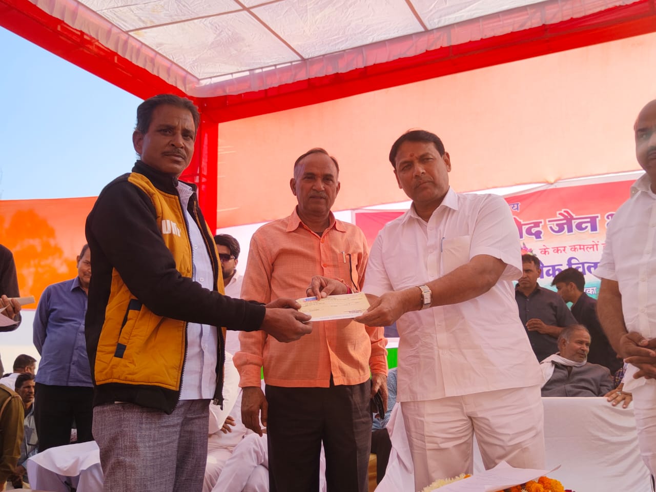 बारां । राज्य के खान एवं गोपालन मंत्री प्रमोद जैन भाया द्वारा शनिवार को अंता एवं सीसवाली में आयोजित शिविर में नोनेरा बांध के डूब क्षेत्र में आयी जमीन के प्रभावितों को करोडो रूपए की राशि के 2397 चैकों का वितरण किया गया। जहां पर मुआवजा राषि के चैक प्राप्त होने पर प्रभावितों द्वारा मंत्री प्रमोद जैन भाया का आभार व्यक्त किया गया।