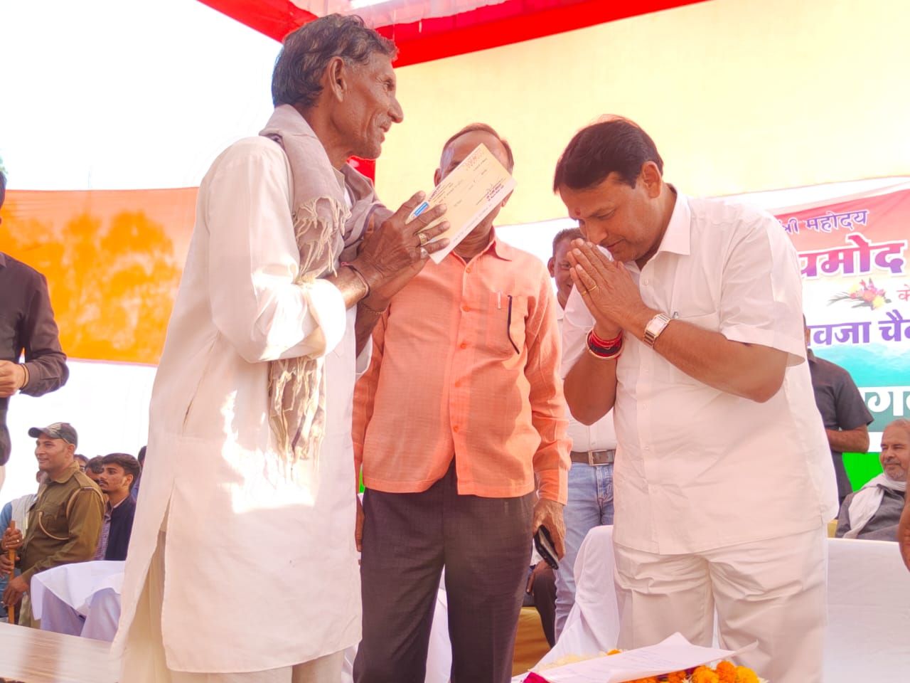आज मंत्री प्रमोद जैन भाया द्वारा सरदार बल्लभ पटेल स्टेडियम, अन्ता एवं कुम्हारों की कुटिया, सीसवाली में आयोजित मुआवजा राषि चैक वितरण शिविर विर में अपने हाथों से लाभार्थियों को मुआवजा राशि के चैक वितरीत किए गए। अन्ता शिविर में ग्राम पंचायत बालदडा, पाटोन्दा, रायपुरिया, लदवाडा के 1100 चैक एवं सीएफसीएल के 350 चैकों का वितरण किया गया। इसी प्रकार सीसवाली शिविर में ग्राम कनाडा, सीसवाली, रकसपुरिया, भटेडी, सोनवा, पीपल्दा गांवों के 947 चैकों का वितरण किया गया।