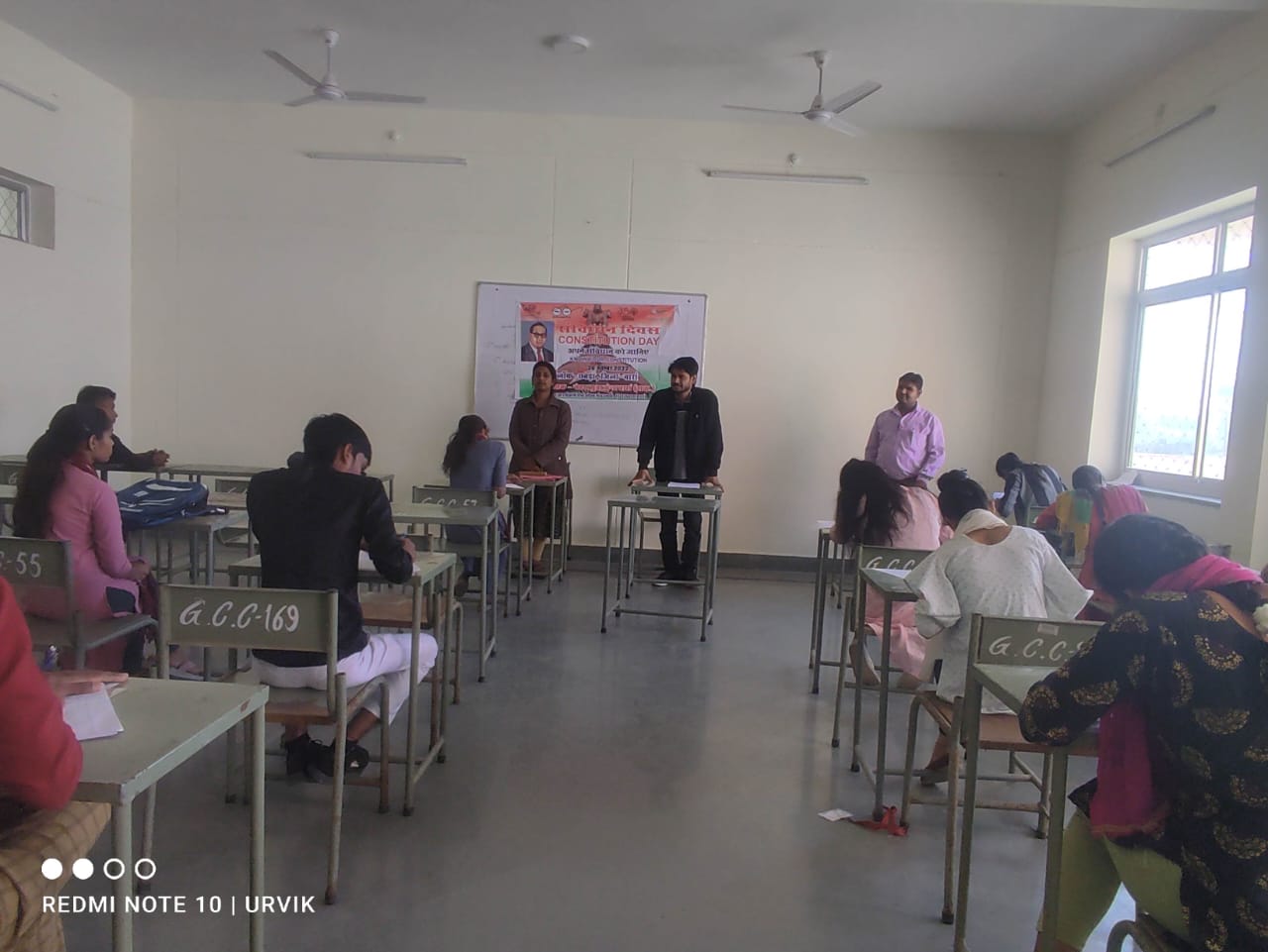 युवा कार्यक्रम एवं खेल मंत्रालय भारत सरकार के नेहरू युवा केंद्र बारां के जिला युवा अधिकारी कुमार मधुकर के दिशा निर्देश पर ब्लॉक छबड़ा की राष्ट्रीय स्वयंसेवक पिंकी भार्गव के नेतृत्व में राजकीय महाविद्यालय तथा राजकीय कन्या महाविद्यालय में 26 नवम्बर को प्रोफेसर बलराज कुमार प्रजापत जी की अध्यक्षता में संविधान दिवस कार्यक्रम आयोजित किया गया l कार्यक्रम की शुरुआत राष्ट्रीय मनोज जी मीणा तथा बलराज जी प्रजापत द्वारा डॉ .भीमराव अंबेडकर की तस्वीर पर माल्यार्पण कर किया गया पश्चात उसके पश्चात राष्ट्रीय स्वयंसेवक में युवाओं को बताया कि हमारा देश का संविधान अत्यंत कठोर व लचीला है यह विश्व का सबसे बड़ा लिखित संविधान है जो 26 नवंबर 1949 को पारित हुआ तथा उद्देशिका के माध्यम से हमें यह सीख मिलती हैं मजबूती में सहायक बन सकते हैं इस दौरान मनोज सिंह मीणा ने युवाओं को देश का भविष्य बताते हुए उन्हें अपने अधिकारों तथा अपने कर्तव्यों के प्रति जागरूक होने की प्रेरणा दे साथ ही प्रोफेसर बलराज जी ने छात्रों को अपने जीवन काल में अपने अधिकारों तथा कर्तव्यों के प्रति निष्ठावान रहने का संदेश दिया सभी युवा मंडल के सदस्यों द्वारा संविधान कि प्रस्तावना पढ़ी गई। कार्यक्रम के अंत में एलडीसी बनवारी रावल ने सभी की उपस्थिति तथा राष्ट्रीय राष्ट्रीय युवा स्वयंसेवक का आभार प्रकट करते हुए सभी को धन्यवाद दिया
