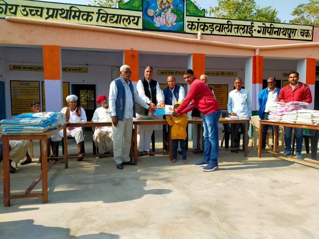 सीकर 22 दिसम्बर। राजकीय उच्च प्राथमिक विद्यालय कांकडवाली तलाई गोपीनाथपुरा (चक) में गुरूवार को मुख्यमंत्री नि:शुल्क पोशाक वितरण कार्यक्रम के तहत बच्चों को नि:शुल्क पोशाक वितरित की गई। इस दौरान सरपंच श्योजीराम बुरड़क, सहकारी समिति अध्यक्ष शंकरदयाल स्वामी, उपाध्यक्ष रामलाल महला, पीईईओ उमाड़ा महेन्द्र कुमार, संस्था प्रधान हरदेवाराम जाट, शिक्षाविद्ध आनन्दी लाल शेषमा, सोहन लाल बुरड़क, रामनिवास एवं एसएमसी अध्यक्ष भंवर लाल सामोता सहित समस्त विद्यालय स्टॉफ तथा गांव के गणमान्य नगरिक, मातृशक्ति, छात्र—छात्राएं मौजूद रही।