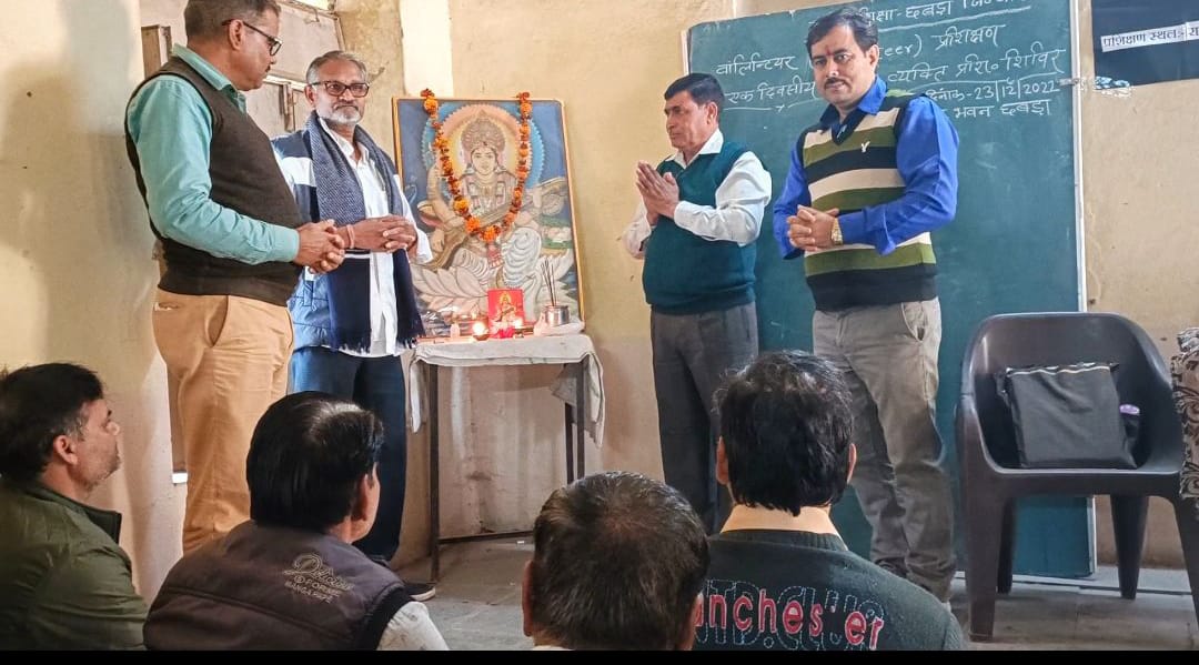 छबड़ा:राजस्थान स्कूल शिक्षा परिषद स्कूल शिक्षा विभाग,राजस्थान सरकार के दिशा निर्देशानुसार एवं अतिरिक्त जिला परियोजना समन्वयक जिला बारां के आदेशानुसार ओर मुख्य ब्लॉक शिक्षा अधिकारी प्रेम सिंह मीणा के नेतृत्व में राजकीय उच्च माध्यमिक विद्यालय छबड़ा स्थित स्काउट भवन में 23 दिसम्बर,शुक्रवार को ब्लॉक के राजकीय प्राथमिक,उच्च प्राथमिक ओर उच्च माध्यमिक विद्यालयों के एक-एक शिक्षक को मोड्यूल अनुसार एक दिवसीय प्रशिक्षण दिया गया।ब्लॉक आर.पी.शंकर लाल नागर के अनुसार 23 दिसम्बर को प्रधानाचार्य ओम प्रकाश शर्मा,स्काउट सचिव घनशयाम भार्गव,एसआरजी सत्यनारायण शर्मा,प्रभारी शंकर लाल नागर ने माता सरस्वती के दूप,दीप जला माल्यार्पण कर कार्यशाला का उदघाटन किया गया।शिविर की ओर से एसआरजी सत्यनारायण शर्मा ने प्रशिक्षण दिया।