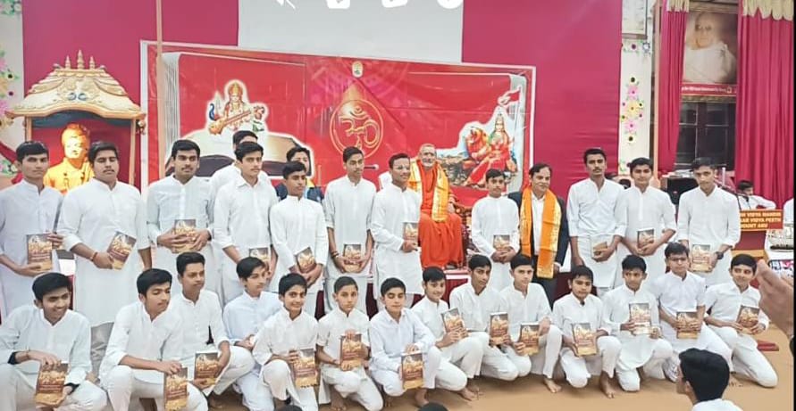 माउंट आबू – विद्या भारती अखिल भारतीय शिक्षा संस्थान के तत्वावधान में संचालित आदर्श विद्या मंदिर उच्च माध्यमिक विद्यालय शंकर विद्या पीठ माउंट आबू के सभागार में धर्म सभा का आयोजन हुआ।जिसमें बड़ी संख्या में विद्यालय के छात्र एवं आचार्य दीदी ने उत्साह पूर्वक भाग लिया। विद्या मंदिर के प्राचार्य धीरज कुमार शर्मा एवं मीडिया प्रमुख दिनेश कुमार ने जानकारी देते हुए बताया कि धर्म सभा पूज्य स्वामी श्री नारायणगिरिजी महाराज दुलेश्वर मंदिर एवं संत सरोवर माउंट आबू के पावन सानिध्य में एवं मुख्य अतिथि डॉ. सुधीर सिंह नेत्र रोग विशेषज्ञ ग्लोबल हॉस्पिटल की उपस्थिति में संपन्न हुई। इस अवसर पर स्वामी नारायण गिरी जी महाराज ने गीता की वर्तमान प्रासंगिकता विषय पर प्रवचन देकर छात्रों को श्रीमद भागवत गीता वितरण किया। स्वामी जी महाराज ने अपने प्रवचनों में कहा कि जो व्यक्ति श्रद्धा एवं आदर पूर्वक श्रीमद्भागवत का नियमित पाठ करता है उसका जीवन ओजस्वी तेजस्वी बनता है तथा वह व्यक्ति सफल व सार्थक जीवन जीते हुए देश और समाज का भला करता है।वर्तमान में मानव अनेक समस्याओं से ग्रस्त हैं उन सब का समाधान गीता में विद्यमान है।उन्होंने गीता के महत्व के अनेक दृष्टांत प्रस्तुत कर उपस्थित विद्यार्थियों को मंत्रमुग्ध कर दिया। डॉ. सुधीर सिंह ने छात्रों को मानव जीवन में भागवत गीता के महत्व के बारे में भी बताया। विशिष्ट अतिथि जयप्रकाश शर्मा,डॉ.उमेश चंद्र मेहनानी,एनेस्थेटिक और इंटेंसिव केयर यूनिट मस्कट,ओमान ने सभी छात्रों और स्टाफ सदस्यों को भगवत गीता भेंट की।आभार एवं शांति मंत्र के साथ कार्यक्रम का समापन हुआ।