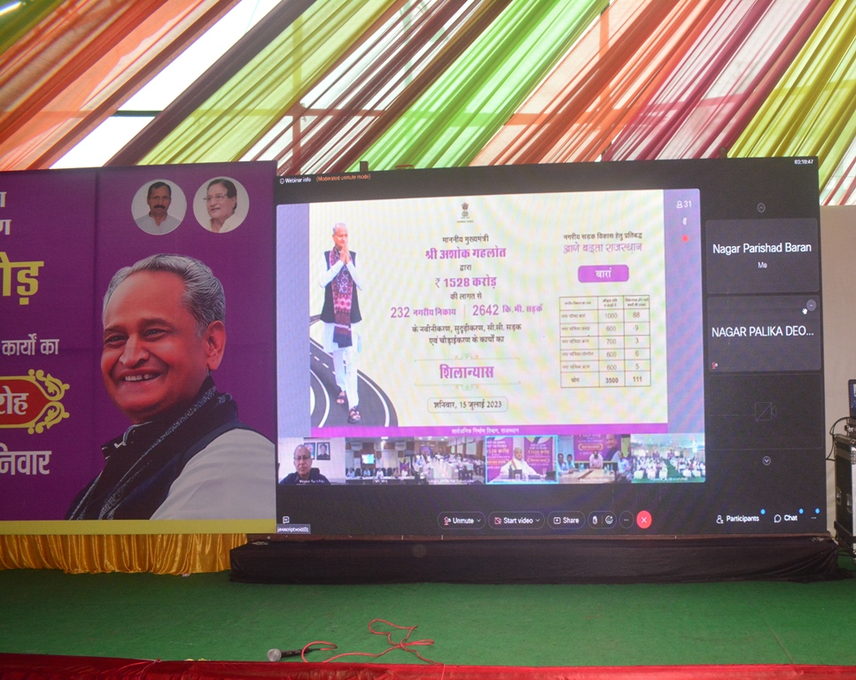 बारां, 15 जुलाई। मुख्यमंत्री अशोक गहलोत ने बजट घोषणा के तहत प्रदेश के नगरीय क्षेत्रों में स्वीकृत सड़कों की वर्चुअल शिलान्यास शनीवार को किया। बारां जिले के सभी नगरीय क्षेत्रों में वर्चुअल शिलान्यास समारोह का सीधा प्रसारण किया गया।