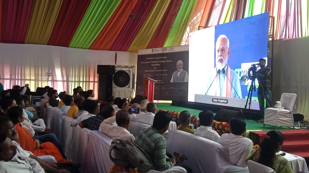 बारां, 27 जुलाई। प्रधानमंत्री श्री नरेन्द्र मोदी ने गुरूवार को जिला मुख्यालय पर मेलखेड़ी गांव के समीप निर्मित होने वाले मेडिकल कॉलेज का वर्चुअली शिलान्यास किया। अगले वर्ष तक बनकर पूर्ण हो जाने पर मेडिकल कॉलेज में प्रथम चरण में सौ सीटों पर मेडिकल विद्यार्थियों को प्रवेश मिल सकेगा।