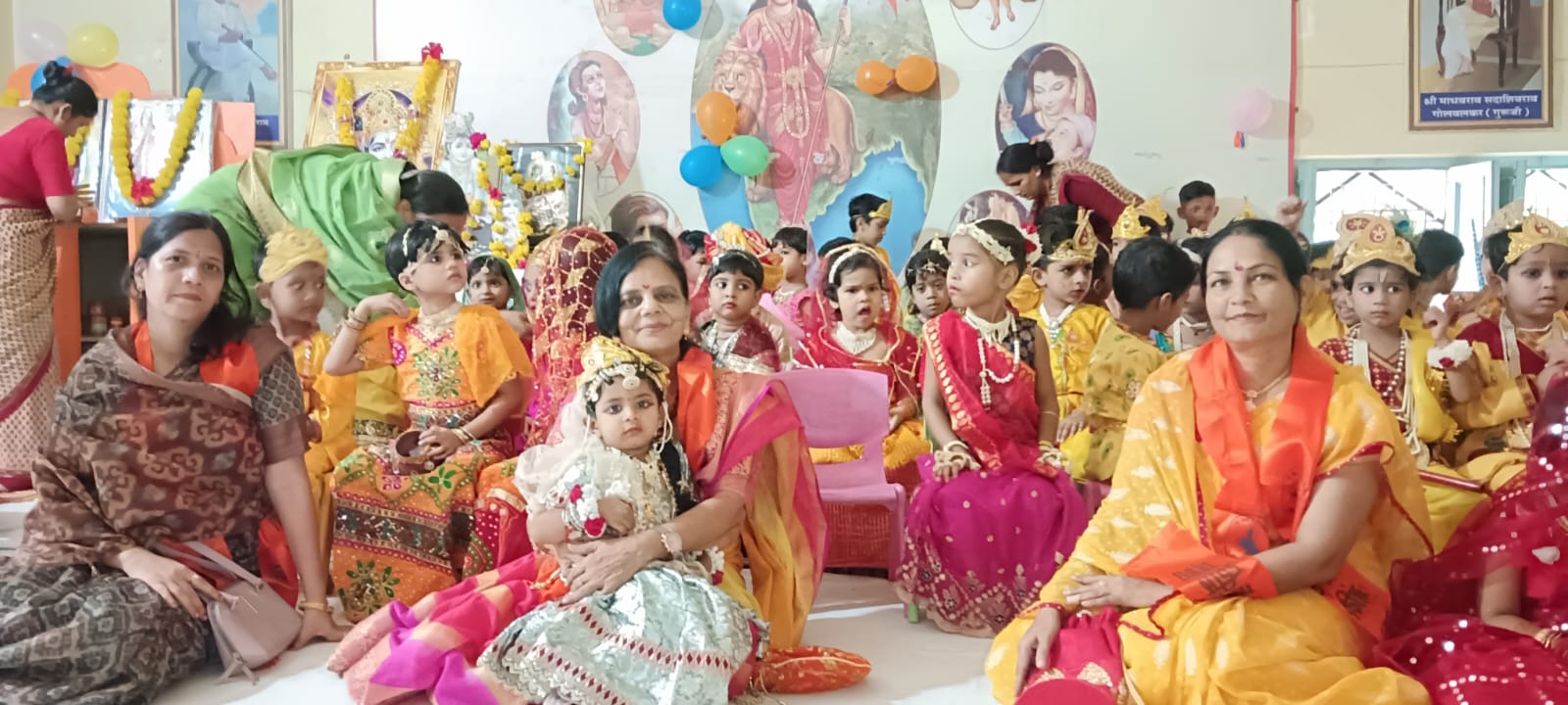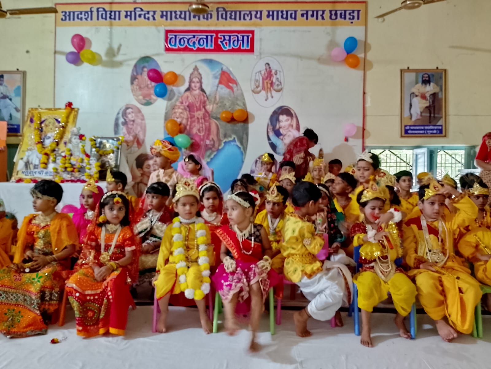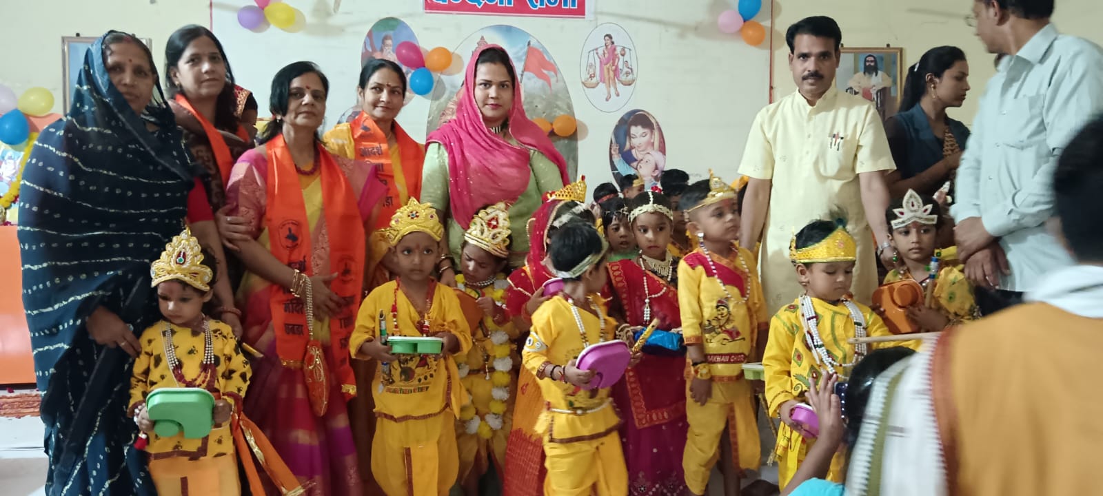 प्रधानाचार्य अमृतलाल मीणा ने जानकारी देते बताएं की मां सरस्वती के समक्ष दीप जलाकर कार्यक्रम का शुभारंभ किया ।कार्यक्रम के मुख्य अतिथि श्रीमती मृदुला जैन अंतरराष्ट्रीय वैश्य समाज की कोऑर्डिनेटर प्रगति क्लब के अध्यक्ष के मुख्य अतिथि एवं समाजसेवी किरण गोलछा वह श्रीमती कविता गर्ग प्रबंध समिति के सचिव नरेंद्र सोनी प्रबंध समिति सदस्य मनोज गोलछा के मुख्य आतिथ्य में संपन्न हुआ। राधा कृष्ण बनकर आए सभी भैया बहनों को अतिथियों द्वारा पुरस्कार देकर सम्मानित किया गया भैया पुनीत रावल स्वरांजलि हर्ष ओझा हेमंत अभिभावकों द्वारा भजन की प्रस्तुतियां दी गई तत्पश्चात भगवान श्री कृष्ण की मां आरती के साथ कार्यक्रम का समापन हुआ। कार्यक्रम को सफल बनाने में ललित गालव रामनरेश योगी मोहनलाल मीणा ऋषभ चंद्र नागर, बलराम नागर सुरेंद्र कंवर मीना शर्मा दीपिका हाडा ने परिश्रम कर कार्यक्रम भव्यता प्रदान की। संचालन विद्यालय के संगीत प्रमुख राजेंद्र रावल द्वारा किया गया