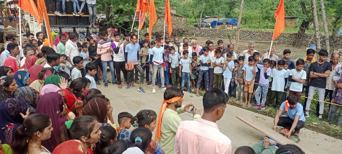 हान्याहेड़ी ग्राम में चल रहीं भागवत कथा के समापन पर रूप सिंह सूर्यवंशी द्वारा आरती की गयी।