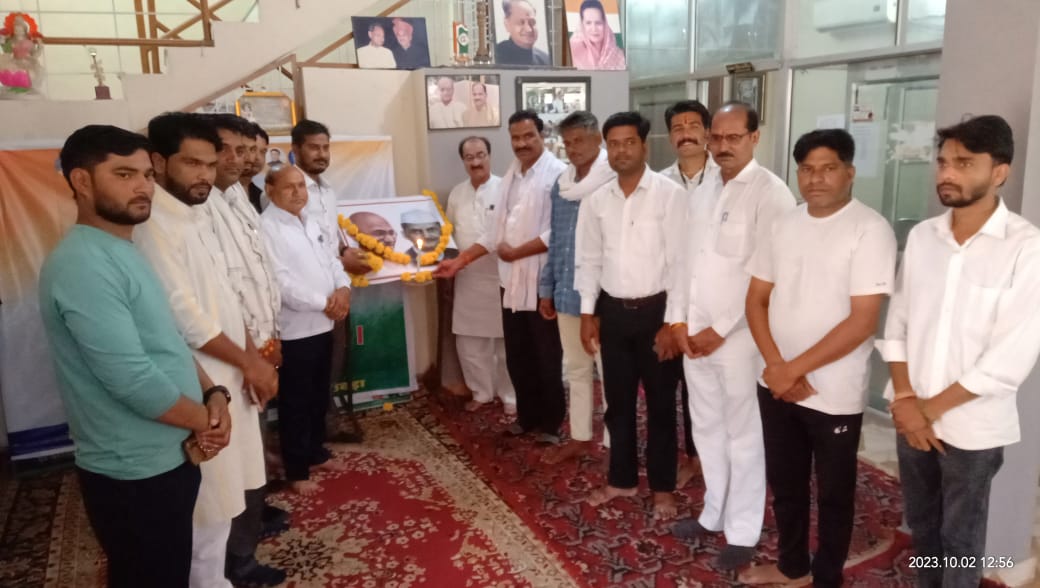 छबड़ा के शक्ति नगर स्थित कांग्रेस कार्यालय पर आज 2 अक्टूबर को महात्मा गांधी एवं पूर्व प्रधानमंत्री लाल बहादुर शास्त्री जी की जयंती पर कांग्रेस कार्यकर्ताओं ने एक संगोष्ठी का आयोजन कर महात्मा गांधी एवं लाल बहादुर शास्त्री को पुष्प अर्पित कर श्रद्धा से याद किया ।
