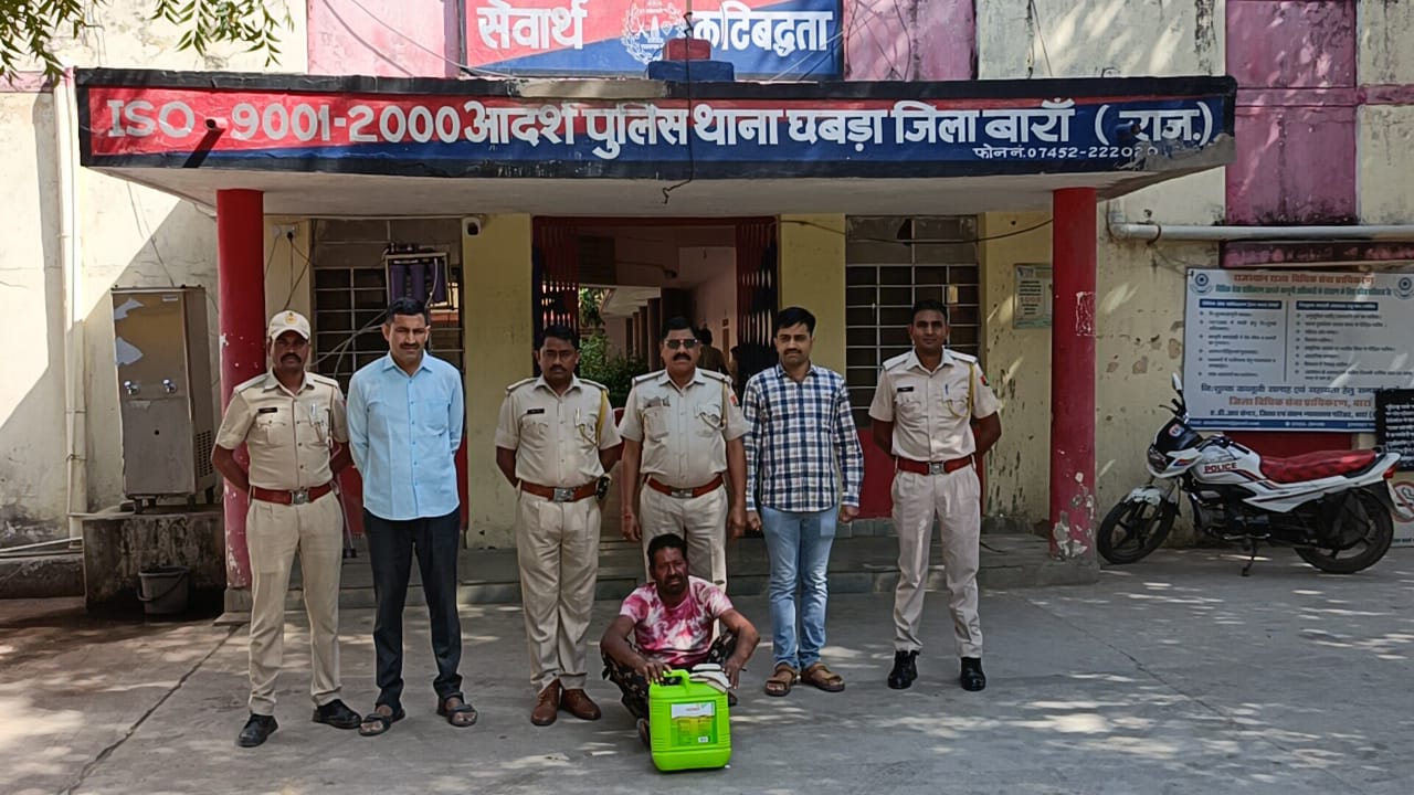 जरीकेन में 15 लीटर अवैध हथकड कच्ची शराब ले जाते हुये अभियुक्त गिरफतार अभियुक्त के कब्जे से मिली 15 लीटर अवैध हथकड़ कच्ची शराब को किया जप्त जिला पुलिस जिला बारा राज कुमार चौधरी ने बताया कि आगामी विधानसभा चुनावों को मध्यनजर रखते हुये अवैध कार्यों मादक पदार्थ की तस्करी, जुआ सटटा शराब हथियारों की हेतु चलाये जा रहे अभियान के तहत श्री नेत्रपाल सिंहताधिकारी कृत के निर्देशन में आज दिनांक 4.10.2023 को थानाधिकारी थाना छबड़ा श्री छुटटनलाल पु०नि० के नेतृत्व में श्री मंगलूराम का 04 श्री महेशान 58 श्री ओमप्रकाश कानि0 1467 एवं गोर नाक पर लगे हुये जाप्ता श्री सूरजमान है का 983 श्री राजूराम 108 श्री जयराम कानि0 1075 की संयुक्त टीम में दौराने पैकिंग गोर नाके पर 15 लीटर अवैध की शराब की जरीकेन से जाते हुये अभियुक्त धीरन पुत्र प्रेम सिंह जाति सांसी उम्र 46 साल निवासी लक्ष्मीपुरा थाना छडा को गिरफतार किया गया जिसके कब्जे से मिली 15 लीटर अवैध कच्ची शराब को जप्त किया गया एवं 1054 एक्साईज एक्ट में प्रकरण दर्ज किया गया ।