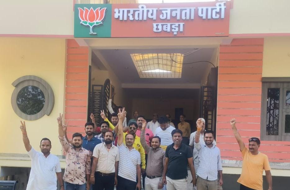 प्रतापसिंह सिंघवी को छबड़ा विधानसभा क्षेत्र से पुनः भारतीय जनता पार्टी के प्रत्याशी बनाने पर भाजपा कार्यकर्ताओ द्वारा भाजपा कार्यालय छबड़ा पर कार्यकर्ताओ ने ढोल बाजो के साथ जमकर नाच गाने किया व आतिशबाजी कर एक दूसरे का मुंह मीठाकर खुशी बनाई व सभी कार्यकर्ताओ ने एकजुट होकर भाजपा को भारी मतो से विजय बनाने का संकल्प लिया। इस अवसर पर हिम्मतसिंह सिंघवी, नगर अध्यक्ष चन्द्रप्रकाश गेरा, नगर पालिका अध्यक्ष कैलाशचन्द जैन, भंवरलाल वर्मा, हरिऔम गौड, बनवारी शर्मा, कपिल यादव, कमल आसावत, मनमोहन सेन, गोविन्द तिवारी, गणेश भार्गव, मनोज राठौड, हरिऔम नागर खोपर, गोविन्द माचल, सुनील तेजस्वी, मनोज सुमन, दीपक भार्गव, गौरव सेन, मानसिंह मीणा, फूलसिंह मीणा, गोपाल उपाध्याय, प्रतीक तंवर, हिमांशु धींगडा, कुलदीप सिंघवी, गजानन्द मीणा, शिवचरण मीणा, मोरपाल मीणा, निरंजन गुर्जर, अमित करतला, धीरप मीणा, नवल कुमावत, लालाराम नागर, समेत कई भाजपा कार्यकर्ता मौजूद रहे।