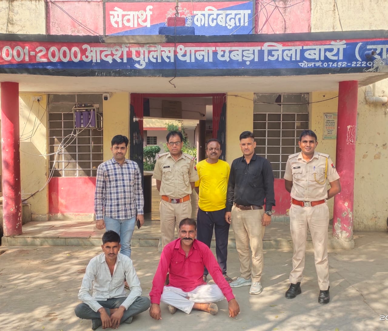 जिला पुलिस अधीक्षक बारा राज कुमार चौधरी ने बताया कि आगामी विधानसभा चुनाव को मध्यनजर रखते हुए अवैध हथियार, मादक पदार्थ जुआ सटटा व स्थाई वारंटी 299 सीआरपीसी में वांछित अपराधियों की धरपकड हेतु चलाये जा रहे विशेष अभियान के तहत अतिरिक्त पुलिस अधीक्षक घनश्याम शर्मा के सुपरवीजन में तरूण कान्त सोमानी वृताधिकारी व त छबड़ा के नेतृत्व में छुट्टन लाल पु०नि० थानाधिकारी की छबड़ा की गठित टीम ने थाना छबड़ा के प्रकरण संख्या 275 / 2020 धारा 147, 148, 149, 353, 332,307 भादस में फरार भगौडा 1. महेन्द्र निवासी मुण्डाघाटा बीड थाना छीपाबडोद जिला बारा राज0 02 सागर गुर्जर निवासी मुण्डकी थाना छीपाबडोद जिला बारा राज० ने दिनाक 19.05.2020 को अभयसिंह स0उ0नि० थाना छबड़ा मय जाप्ता के अनुसंधान हेतू अंधेरी नदी मौजा मुण्डकया गए थे जिनके साथ मुल्जिमान ने अपने साथियों के साथ एक राय होकर राजकार्य में बाधा डालकर पुलिस टीम पर जानलेवा हमला किया था जिसमें अभयसिंह स०उ०नि० तथा धन्नाराम कानि 661 के गंभीर चोटे आई थी। उक्त भगौड़े बाद घटना के पिछले 03 सालो से फरार चल रहे थे जिनको गठित टीम को जर्ये मुखबिर सूचना मिली कि उक्त फरार भगौडे बमोरी घाटा चौकी के सामने चाय की दूकान पर बैठे है जिन्हें टीम द्वारा कडी मेहनत व लगन से गिरफ्तार किया गया है।