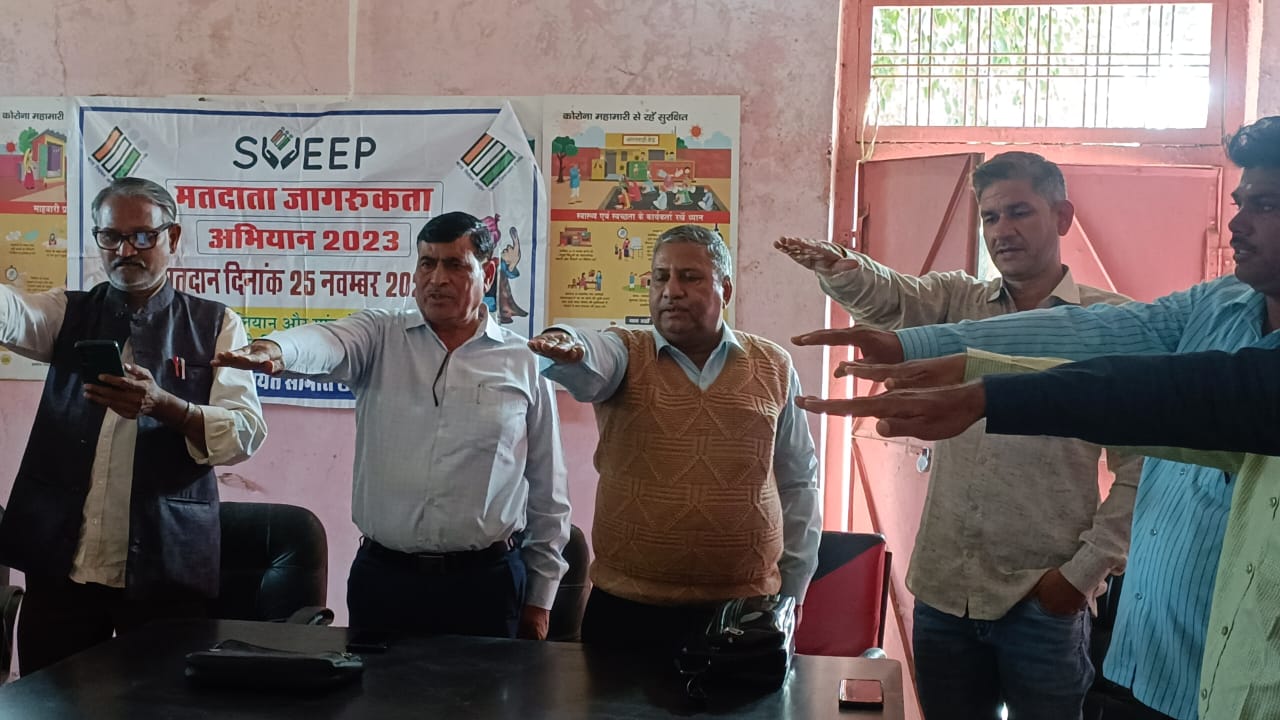 छबड़ा:जिला कलेक्टर महोदय जिला बारां एवं मुख्य कार्यकारी अधिकारी जिला परिषद बारां के वीसी निर्देशानुसार एवं विकास अधिकारी पंचायत समिति छबड़ा के आदेश ओर मार्गदर्शन में गुरुवार को भारत राजीव गांधी सेवा केंद्र बापचा में मुख्य ब्लॉक शिक्षा अधिकारी ओम प्रकाश गालव की अध्यक्षता में गुरुवार को क्लस्टर स्तरीय हैला टोली सदस्य ग्राम पंचायत बापचा, तीतरखेड़ी,कडैयाहाट,गोड़िया मेहर के सदस्यों के साथ बैठक का आयोजन किया गया। बैठक में सीबीईओ ओम प्रकाश गालव ओर समग्र शिक्षा ब्लॉक आर.पी.शंकर लाल नागर ने हैला टोली के सदस्यों को प्रेरित कर अपने सम्बोधन में कहा कि आपकों अपने-अपने क्षेत्र में 18 प्लस आयु के नव मतदाताओं,महिला मतदाताओं ओर क्षेत्र से पलायन कर काम की तलाश में बाहर गये मतदाताओं के साथ ग्रामों में 80 प्लस के बुजुर्ग मतदाताओं से भी संपर्क कर मतदान के लिये सूचित कर प्रेरित करना है साथ ही घर-घर मतदान आमंत्रण पत्र भेजकर या मुख्य गेट पर आमंत्रण पत्र चस्पा कर मतदान की तारीख 25 नवंबर को अपने मतदान केंद्र पर आवश्यक रूप से उपस्थित होकर मतदान करने के लिये हरेक मतदाता को सन्देश देकर मतदान केंद्र से दूरी रखने वालों का भी आवाहन करना है तभी हम 100 प्रतिशत मतदान के लक्ष्यों को पूरा कर पाएंगे।बैठक में सभी उपस्थित कार्मिकों ओर ग्राम पंचायत के हैला टोली,आंगनबाड़ी,मां बॉडी,चिकित्सा केंद्र,पंचायत कर्मी,राजस्व विभाग,वन विभाग,जल और बिजली विभाग के साथ शिक्षा विभाग के उपस्थित सदस्यों को निर्भीक होकर अपने जाति, धर्म,वर्ग,सम्प्रदाय से रहित होकर भारतीय सच्चे नागरिक के रूप में बिना लाभ,लालच,लोभ ओर प्रलोभन के स्वार्थीभावों से ऊपर उठ लोकतंत्र के उज्ववल भविष्य के लिये मतदान करने जाना है। उपस्थित सदस्यों को संकल्प भी दिलवाया गया सभी को मतदान करने की शपत भी दिलवा कर कहा कि ’25 नवंबर भूल ना जाना,वोट डालनें जरूर आना’ के नारे के साथ 100 प्रतिशत मतदान करने और कराने का संकल्प भी लिया गया।बैठक को सीबीईओ ओम प्रकाश गालव, आरपी शंकर लाल नागर, पीईईओ बापचा बालकिशन शर्मा,पीईईओ प्रतिनिधि तीतरखेड़ी,ओंकार लाल ऐरवाल,व्याख्याता मनोज कुमार,गोड़िया मेहर,ग्राम विकास अधिकारी रामभरोस शर्मा बापचा ने भी सम्बोधित कर कहा कि सभी को नरेगा के मजदूरों,ग्रामों के सहकारी समूह,स्कूल के युवा बालको,आंगनबाड़ी कार्यकर्ताओं आदि से मिलकर सतरंगी सप्ताह में भाग लेकर सभी मतदाताओं को मतदान की तारीख तक प्रेरित करने को कहा गया। बापचा क्लस्टर पर हैला टोली सदस्यों की बैठक में बीएलओ सोहन सिंह यादव,गोपाल लाल वर्मा,ओंकार लाल,गोटिया वर्मा,विक्रम सैनी,अशोक कुमार मेहरा,मानसिंह गुर्जर,यशवंत सिंह,कौशल नागर,महेंद्र सिंह,प्रधानाचार्य मनीषा,प्रेरक पहलवान सिंह,स