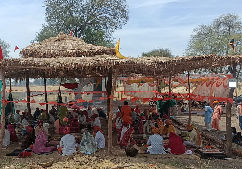 छबड़ा:श्री हनुमान सिद्ध साधनाश्रम एवं श्री संकल्पेश्वर महादेव मंदिर द्वादश ज्योतिर्लिंग धाम,अमीरपुर खेड़ी(भुवाखेड़ी) तह. छबड़ा जिला बारां राजस्थान नामक स्थान पर श्री राम-हनुमान जी महाराज की कृपा से सनातन धर्म परिषद भारत,संरक्षक हाड़ौती विरिक्त मंडल भीष्म महन्त श्री सनातन पुरी जी नागा बाबा शिवपुरी धाम कोटा(राज.) एवं बालाजी महाराज की सद्प्रेरणा ओर मार्गदर्शन में 2022 में बसंत पंचमी को नींव मुहूर्त कर 2024 में श्री राम भक्त हनुमान जी महाराज का महंत सेवानन्द पुरी महाराज का मंदिर निर्माण का सपना पूर्ण हुआ।नये मन्दिर में अभिषेक पूजन,अर्चन बाद बाला जी महाराज का 17अप्रैल को नये मन्दिर में प्रवेश हुआ।अलख निरंजन ज्योति ध्यान योग केंद्र के योगाध्यक्ष शंकर लाल नागर के अनुसार बाला जी महाराज के नये मन्दिर में प्रवेश के उपलक्ष्य में नव कुण्डीय श्री राम-हनुमान यज्ञ का आयोजन पिछले पांच दिनों से चला आ रहा था।यज्ञाचार्य पण्डित बृज मोहन शर्मा के नेतृत्व में 9 पंडितों का दल यज्ञ में दैनिक रूप से वैदिक मंत्रोच्चारण के साथ समस्त देवों को आहुतियों के माध्यम से हविष्यान्न दिला रहे थे।सोमवार आज यज्ञ की पूर्णाहुति पर प्रसाद का वितरण होगा।यज्ञ में पंडित नन्दकिशोर गौत्तम,महंत रामानुजपुरी,सुरजपुरी,श्री-श्री बालक दास जी खडेश्वर महाराज सहित क्षेत्र के संतों,महंतों,ब्राह्मणों का सत्संग हुआ।पिछले पांच दिनों से चल रहे धार्मिक सत्संग का आम जन एवं क्षेत्र के धर्म प्रेमी जनों ने लाभ उठाया।कोटा से पदारे संत सनातन पुरी महाराज ने अपने संदेश में कहा कि हमारा शरीर पांच तत्वों से रचित है यज्ञ,हवन से देवों की उदरपूर्ति होती है जिससे देव प्रसन्न होकर जनमानस पर कृपा करते है।यज्ञ से मेघवृष्टि होती है मेघवृष्टि से अन्न की पैदावार बढ़ती है जिससे देश में खुशयाली आती है प्रकृति का वातावरण शुद्ध होता है सभी को बड़े यज्ञ नही तो दैनिक हवन अवश्य करना चाहिये।हर व्यक्ति के जीवन में संत,पंथ ओर ग्रंथ का सत्संग जरूरी है इससे व्यक्ति परिवार,समाज,राष्ट्र का नव- निर्माण होता है।वर्तमान में गो,ब्राह्मण ओर संतो की सेवा का सरल मार्ग,यज्ञ ओर सत्संग का आयोजन है इनमें आमजन को तन,मन और देने को धन है तो इन तीनों से सेवा करनी चाहिए,सेवा से ही कृपा होती है और जिस जीव पर कृपा हो जाती है उसे धर्म,अर्थ,काम और मोक्ष की प्राप्ति होकर आवागमन से भी जीव की मुक्ति हो सकती है।अलख निरंजन ज्योति ध्यान योग केन्द्र के मंत्री पण्डित परमानन्द शर्मा के अनुसार यज्ञाचार्य बृज मोहन शर्मा के नेतृत्व ओर महन्त सेवानन्द पुरी महाराज के मार्गदर्शन में पण्डित बृज मोहन शर्मा,पण्डित नितेश शर्मा,पण्डित मोती लाल,पण्डित रिन्कू,पण्डित देवकरण,पण्डित मुरारी,मनी