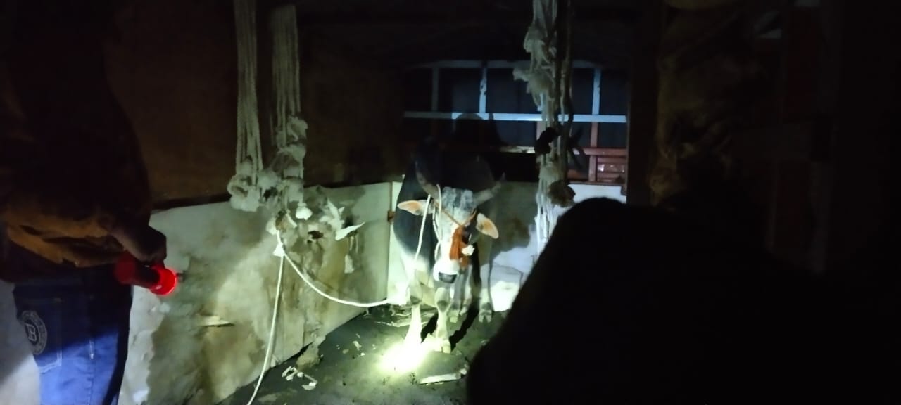 शनिवार रात लगभग 12 बजे एक टाटा 407 और एक बाइक पर सवार लगभग आधा दर्जन लोग निपानिया स्थित छापरी गौशाला में से गाय बछड़े भरने आए।