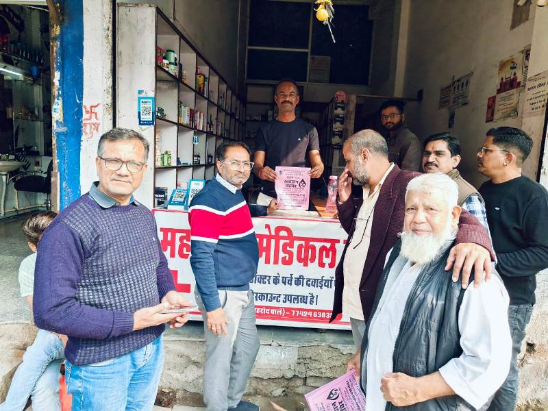 बारां, 23 जनवरी। राजस्थान केमिस्ट अलायंस के आह्वान पर बारां जिला केमिस्ट अलायंस के तत्वावधान में एआईओसीडी के अध्यक्ष जगन्नाथ शिंदे के 75वें जन्मदिवस एवं एआईओसीडी के 50 वर्ष पूर्ण होने पर 24 जनवरी को आयोजित विशाल रक्तदान के लिए प्रेरित करने के लिए गुरूवार को बाजार में डोर-टू-डोर पर्चे वितरित कर आमंत्रित किया। रक्तदान शिविर होस्पिटल रोड पर डॉ. उषा अग्रवाल परिसर स्थित जीवन धारा ब्लड बैंक में लगाया जाएगा। शिविर प्रभारी डॉ. राजमल चित्तौड़ा ने बताया कि अध्यक्ष रवि टक्कर की अगुवाई में सचिव प्रदीप जैन, वरिष्ठ सदस्य अनिल बंसल व सदस्य लोकेश तिवारी, शौरभ भार्गव, मोहित सोनी, इकबाल हुसैन, किशन शर्मा, राजेश शर्मा, जयप्रकाश विजय आदि ने होस्पिटल रोड बाजार में मेडिकल सहित अन्य दुकानों एवं आमजन से अधिकाधिक रक्तदान करने का आग्रह किया। शिविर सुबह 10 से दोपहर 3 बजे तक लगाया जाएगा। शिविर की सभी तैयारियां पूर्ण कर ली गई है। शिविर प्रभारी डॉ. चित्तौड़ा ने आमजन से अधिकाधिक संख्या में रक्तदान कर पुण्य अर्जित करने की अपील की है।