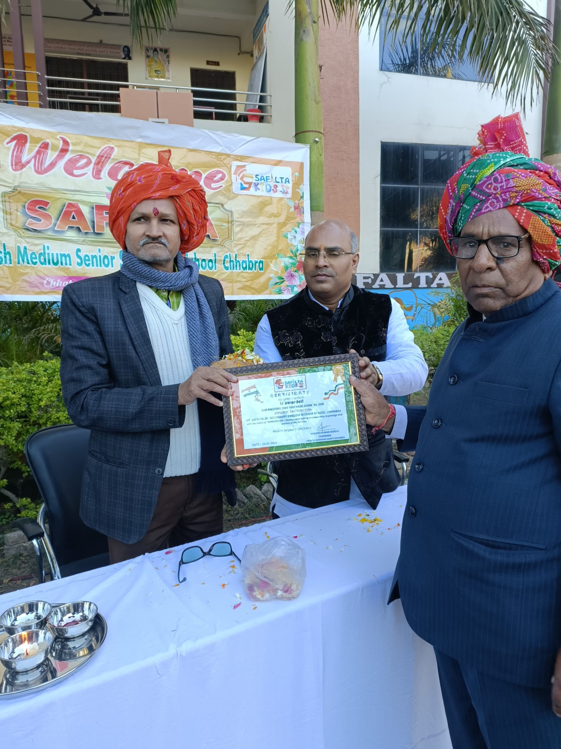 छबड़ा 26 जनवरी,2025 सफलता शिक्षण समिति के तत्वावधान में संचालित सफलता सीनियर सैकंडरी इंग्लिश मीडियम स्कूल छबड़ा में विद्यालय संस्थापक गंगाधर मौर्य की अध्यक्षता ओर चेयरमैन मुकेश मौर्य के सानिध्य ओर मार्गदर्शन में 76 वां गणतंत्र दिवस हर्षोल्लास से मनाया गया।सीबीईओ ऑफिस छबड़ा से सेवानिवृत्,व्याख्याता सन्दर्भ व्यक्ति शंकर लाल नागर,महामंत्री संगठन,राजस्थान प्रदेश कार्यकारिणी,हिंदी साहित्य भारती,राजस्थान नें मुख्य अतिथि के रूप में ध्वज पहरा कर सम्बोधित भी किया।नागर ने कहा कि आजादी के बाद हमें 26 जनवरी,1950 को संवैधानिक आजादी मिली इसके तहत नागरिकों के अधिकार और कर्तव्य भी मिले,सम्पूर्ण भारत में कानून का राज स्थापित हुआ।नागर ने कहा कि अब समय आ गया है कि पुरानी पीढ़ी के मार्गदर्शन में नई पीढ़ी ले घर,परिवार,समाज और राष्ट्र को मजबूत बनानें की जिम्मेदारी।इस अवसर पर संस्था के संस्थापक गंगाधर मौर्य ओर सफलता संस्थान समिति के चेयरमैन मुकेश कुमार मौर्य ने नागर का तिलक चंदन लगा और चुनरी का स्वाफ़ा बांध,स्वावत किया साथ ही स्कूल की ओर से सफलता किड्स सर्टिफिकेट ऑफ एप्रिसिएशन अवार्ड प्रदान कर सम्मानित किया गया,नागर ने स्वागत सत्कार के लिए संस्था का आभार जताया।इस अवसर पर छात्र-छत्राओ ने देश भक्ति के गीतों के साथ रंगारंग सांस्कृतिक कार्यक्रम प्रस्तुत किया।समापन पर सबको शिक्षण संस्थान ओर अभिभावकों मेसे सोनी दम्पति की ओर से कार्यक्रम में भाग लेने वाले बालक-बालिकाओं को पुरुस्कार वितरण कर,सफलता शिक्षण समिति की ओर से मिठाई भी वितरित की गयीं।समापन पर संस्था के चेयरमैन मुकेश मौर्य नें कार्यक्रम में पदारे आगन्तुकों,अभिभावकों का आभार जताया।