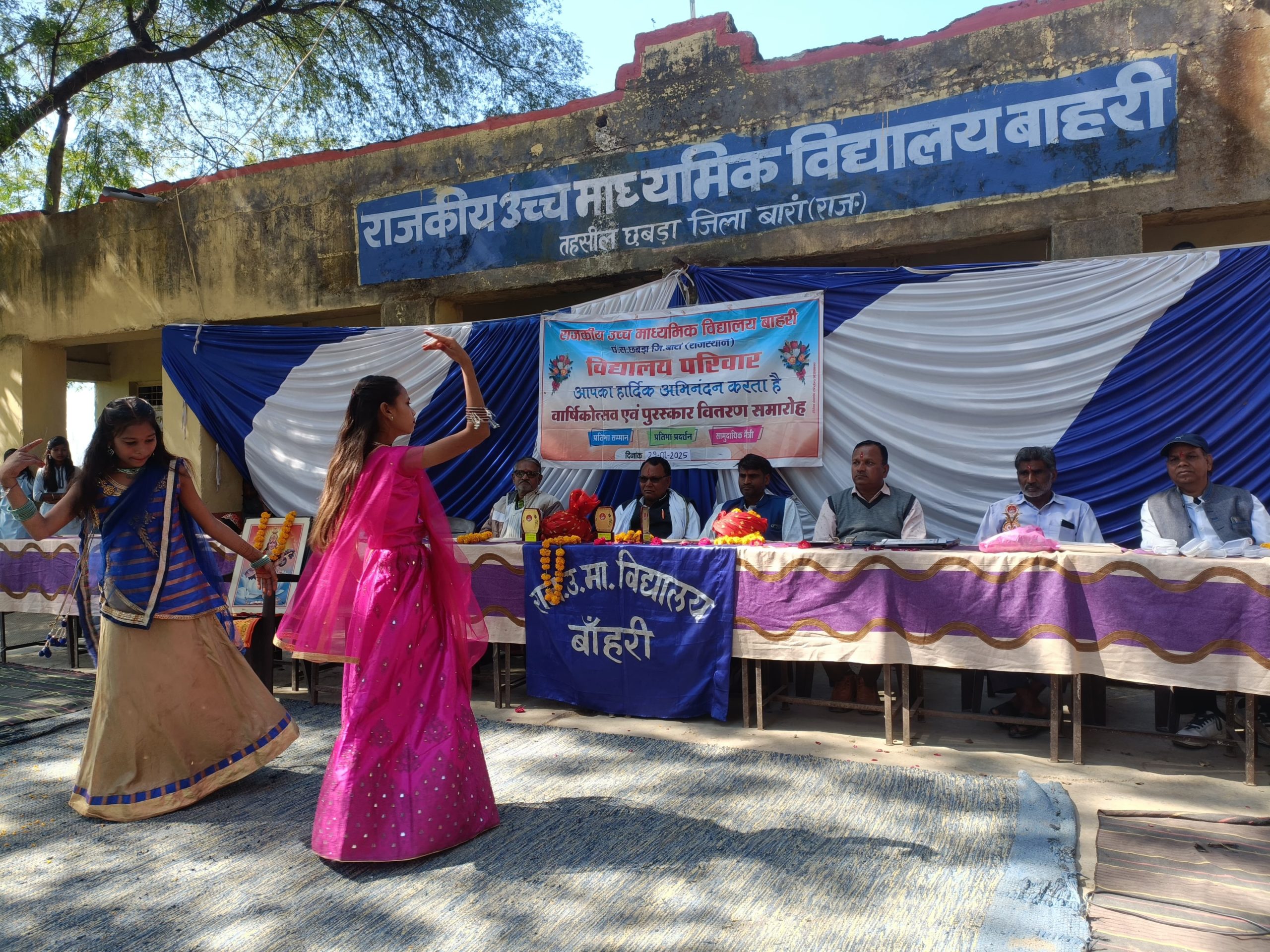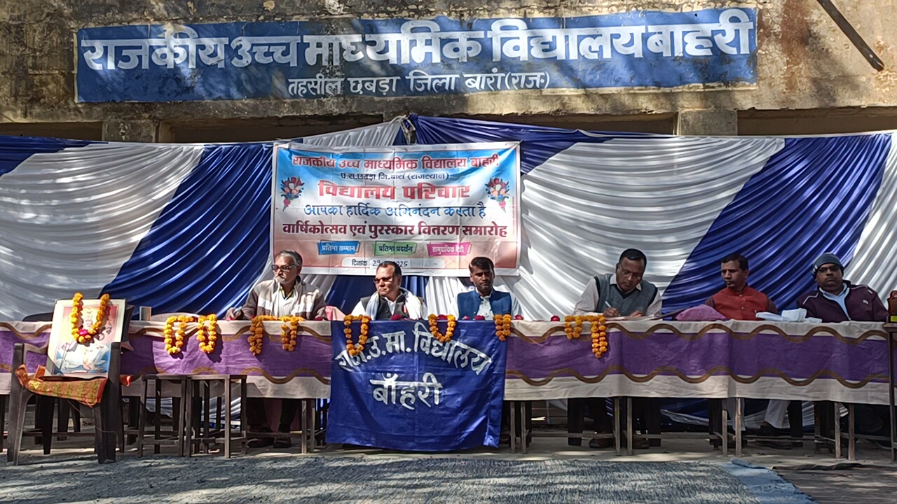 छबड़ा:बुधवार को राजकीय उच्च माध्यमिक विद्यालय बाहरी में वार्षिक उत्सव एवं प्रतिभा सम्मान पुरुस्कार समारोह हुआ समपन्न।प्रधानाचार्य गोविंन्द लाल शर्मा के अनुसार मुख्य अतिथि के रूप में हिंदी साहित्य भारती के राजस्थान प्रदेश कार्यकारिणी के संगठन महामंत्री छबड़ा से शंकर लाल नागर ,सेवानिवृत व्याख्याता(संदर्भ शिक्षक,सीबीईओ ऑफिस छबड़ा )रहें। साथ ही कार्यक्रम की अध्यक्षता एसडीएमसी सदस्य शिवचरण नागर,एसएमसी अध्यक्ष,बनवारी नागर,पूर्व एसएमसी अध्यक्ष सत्यनारायण गाडरी,एसएमसी सदस्य गोविंद चौधरी रहें। कार्यक्रम में विशिष्ट अतिथियों के रूप में अधीनस्थ विधालय के संस्था प्रधान जयप्रकाश कुलश्रेष्ठ चावलखेडी,साहब लाल मीणा दोहनी व अन्य अभिभावक जन ग्राम बाहरी ने कार्यक्रम में भाग लेकर बालक-बालिकाओं के द्वारा प्रस्तुत रंगारंग कार्यक्रम में उत्साह वर्धन किया। कार्यक्रम का संचालन बुद्धिप्रकाश शर्मा व्याख्याता,बाहरी ने किया।स्थानीय विधालय की बालक बालिकाओं ने बहुत ही सुंदर प्रस्तुतियां दी गयीं,जिसमें कविता पाठ,सुगम संगीत,एकल नृत्य,समूह नृत्य आदि शामिल रहे।कार्यक्रम में बालिकाओं ने आत्मरक्षा की भी सुंदर प्रस्तुति दी।बालक- बालिकाओं को विभिन्न प्रतियोगिताओं एवं स्कूली गतिविधियों में भाग लेने वाले छात्र-छत्राओं को ट्रॉफी,मोमेंटो,प्रमाण पत्र आदि मंचासिन अतिथियों द्वारा वितरण कर प्रोत्साहित किया गया।मंच की ओर से पदौन्नति पर प्रधानाचार्य बनें संस्था प्रधान गोविंदलाल शर्मा का मंच की ओर से मुख्य अतिथि नागर के द्वारा सम्मान किया गया। प्रधानाचार्य गोविंन्द लाल शर्मा ने सत्र 2024-25 का प्रतिवेदन प्रस्तुत किया।कक्षा 12 व 10 में प्रथम स्थान व द्वितीय स्थान प्राप्त करने वालो को अध्यापकों के द्वारा 1000,500 रुपए देने की अलग-अलग घोषणाऐं की गई।राजेंद्र लोधा वरिष्ठ अध्यापक ने विगत वर्ष के 90% से अधिक नंबर लाने वाले संस्कृत विषय के बालकों को 500-500 रुपए नकद पुरुस्कार प्रदान किया।उत्कृष्ट कार्यो के लिए स्थानीय विधालय व पीईईओ अधीनस्थ संस्था प्रधानों को प्रमाण पत्र व पुरुष्कार देकर सम्मानित किया।सभी अतिथियों ने अपने उदबोधन में कार्यक्रम की सराहना की गयीं।मुख्य अतिथि शंकर लाल नागर ने बालको को अपनी शिक्षा पूर्ण कर अच्छे और सच्चे नागरिक बनने के लिए प्रेरित किया।साथ ही कोई बालक नेता,अभिनेता और सरकारी कर्मचारी, अधिकारी बने तो ईमानदारी से राष्ट्र की सेवा कर माटी का मोल चुकावे।अंत में प्रधानाचार्य शर्मा ने इस वर्ष की 10ओर 12 वीं की परीक्षाओं में स्कूल में प्रथम ओर द्वितीय स्थान पर रहने वाले विद्यार्थी को नगद पुरुस्कार देने की भी घोषणा की गयीं। कार्यक्रम में पदारे सभी अतिथियों ओर ग्रामीण जनों, अ