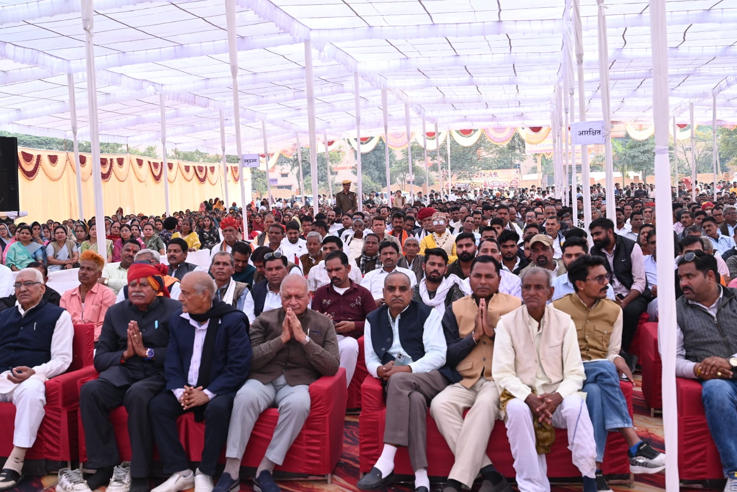 मुख्य वक्ता के रूप में शिव प्रसाद, अखिल भारतीय मंत्री (विद्या भारती) उपस्थित रहे। विशिष्ट अतिथियों में प्रताप सिंह सिंघवी विधायक छबड़ा, सुरेंद्र अरोड़ा प्रांत मंत्री, रमेश चंद मेहता विभाग संघ चालक तथा प्रमोद कुमार राठौर जिला अध्यक्ष सम्मिलित रहे।इस अवसर पर अतिथियों द्वारा विद्यालय की राष्ट्रीय स्तर पर पहचान बनाने वाले प्रतिभावान छात्र-छात्राओं एवं भामाशाहों का सम्मान किया गया। समाज के सहयोग से निर्मित बालिका आदर्श विद्या मंदिर भवन के प्रथम तल के लोकार्पण उपरांत आयोजित कार्यक्रम में लगभग 2500 गणमान्य नागरिकों एवं मातृशक्ति ने सहभागिता की। मुख्य वक्ता शिव प्रसाद ने कहा कि विद्या भारती शिक्षा के आदर्श स्वरूप के माध्यम से हिंदुत्वनिष्ठ राष्ट्रभक्ति से ओतप्रोत भावी पीढ़ी का निर्माण कर रही है।बालिका विद्यालयों के माध्यम से योग्य बेटियों का निर्माण कर देश को पुनः विश्व गुरु बनाने की दिशा में निरंतर कार्य किया जा रहा है। यहां अध्ययनरत छात्राओं में रानी लक्ष्मीबाई जैसा नेतृत्व, अहिल्याबाई जैसा कृतित्व एवं मां जीजाबाई जैसा ममत्व विकसित किया जाता है। यह विद्यालय व्यवसाय का केंद्र नहीं, बल्कि संपूर्ण व्यक्तित्व निर्माण का केंद्र है। मुख्य अतिथि श्रीमती वसुंधरा राजे सिंधिया ने अपने उद्बोधन में कहा कि हमारे कार्यों की आधारशिला हिंदुत्व है। देश एवं धर्म की रक्षा हेतु चरित्रवान एवं संस्कारवान पीढ़ी का निर्माण विद्या भारती के विद्यालयों में हो रहा है। मंचासीन अतिथियों का परिचय विद्या भारती जिला सचिव राजेंद्र कुमार शर्मा ने कराया। समारोह की प्रस्तावना एवं प्रतिवेदन विद्यालय समिति सचिव नरेंद्र कुमार सोनी ने प्रस्तुत किया। कार्यक्रम का संचालन प्रधानाचार्य अमृतलाल मीणा ने किया।