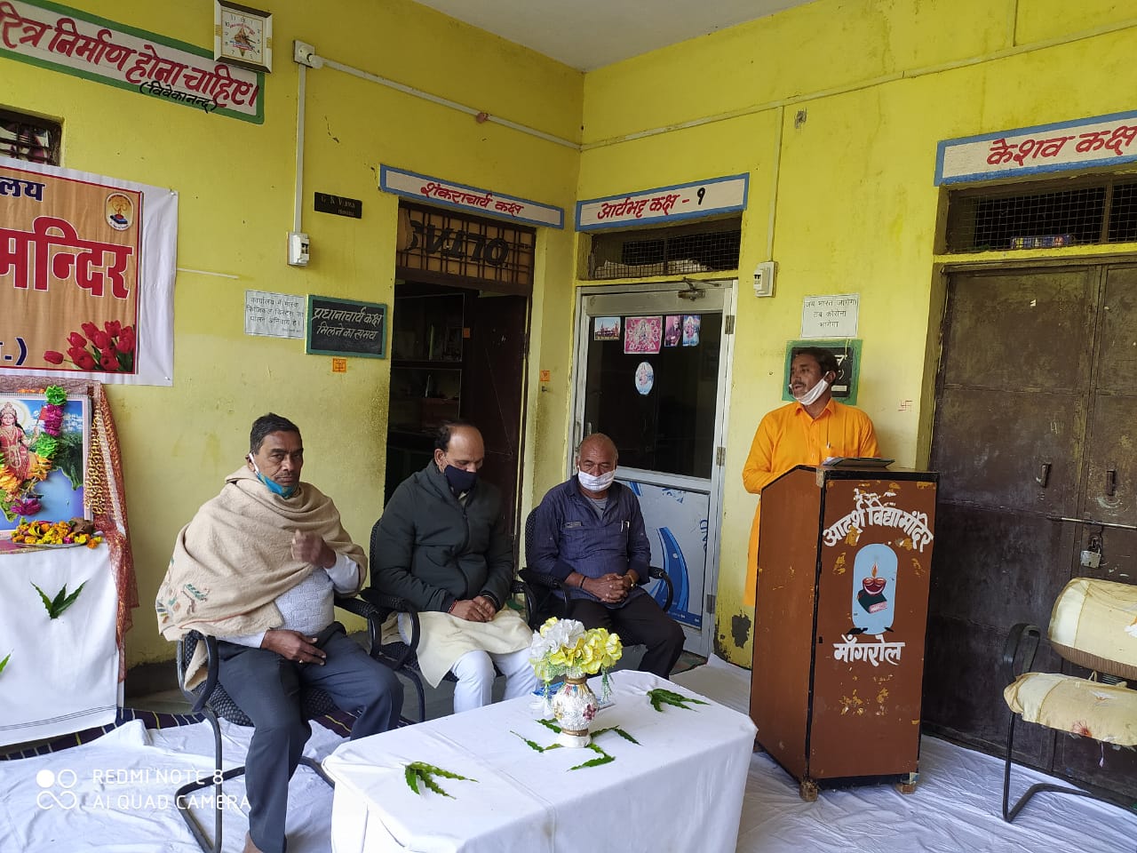 माँगरोल,बाराँ – 22 जनवरी,कस्बे मे विद्या भारती द्वारा संचालित आदर्श विद्या मंदिर की नव गठित प्रबंध समिति का एक दिवसीय स्नेह मिलन कार्यक्रम विद्या मंदिर के सभागार में संपन्न हुआ।जिसमें सभी सदस्यों ने कोरोना गाइडलाइन की पालना करते हुए मास्क सोशल डिस्टेंस व सैनिटाइजर के साथ भाग लिया।विद्यालय समिति के पालक मदन मोहन गुप्ता व प्रधानाचार्य गिरिराज वर्मा ने जानकारी देते हुए बताया कि जिले द्वारा मनोनयन के उपरांत प्रथम बार समिति स्नेह मिलन समारोह का आयोजन जिले के पदाधिकारियों के मार्गदर्शन किया गया।जिसमे मे नूतन अध्यक्ष प्रेमचंद जी सोनी का अभिनंदन किया गया। कार्यक्रम का शुभारंभ मां सरस्वती एवं भारत माता के चित्र पर दीप प्रज्वलन के साथ हुआ। मंचासीन अतिथियों के स्वागत,परिचय एवं वंदना के पश्चात विद्या भारती के जिला सचिव राजेंद्र कुमार शर्मा ने विद्यालय समिति पदाधिकारियों के दायित्व बोध एवं विद्या भारती के लक्ष्य एवं उद्देश्य पर विस्तार से प्रकाश डालते हुए कहा कि विद्या भारती का उद्देश्य भारत की युवा पीढ़ी को संस्कारित अनुशासित एवं राष्ट्रभक्ति से ओतप्रोत बनाना है। देश हमें देता है सब कुछ,हम भी तो कुछ देना सीखे के भाव से हमें विद्यालय के दायित्व का निर्वहन करते हुए सामाजिक सरोकार के कार्य में अपनी भूमिका निभानी है।इस अवसर पर जिला विद्या भारती एवं क्रीड़ा भारती के संयुक्त तत्वाधान में राष्ट्रीय योजना से स्वतंत्रता की 75 वीं वर्षगांठ पर आयोजित होने वाले 75 करोड़ सूर्य नमस्कार कार्यक्रम,निधि समर्पण अभियान,संस्कृति बोध परियोजना,स्वतंत्रता का अमृत उत्सव,जिला वर्तमान में प्रचार सेवा संपर्क का महत्व,कोरोना के प्रति जन जागरण मे हमारी भूमिका एवं बसंत पंचमी प्रवेश उत्सव आदि विषयों पर चर्चा की गई।
