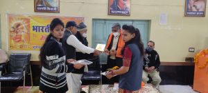 अर्धवार्षिक परीक्षा में अपनी कक्षा में प्रथम स्थान प्राप्त करने वाले प्रतिभावान भैया बहनों के अभिभावक एवं बालकों का स्मृति चिन्ह देकर स्वागत किया गया कार्यक्रम में विद्या मंदिर के आचार्य दीदी द्वारा विद्या भारती का वार्षिक गीत कविता की सुंदर प्रस्तुति दी गई ।उपस्थित सभी महानुभावों ने कार्यक्रम की प्रशंसा की एवं बालकों का योग प्रदर्शन का कार्यक्रम देखकर रोमांचित व गदगद हो गए कार्यक्रम में प्रबंध समिति के नवनिर्वाचित सदस्यों की भी उपस्थिति रहे जिसमे श्रीमान मनोज गोलेछा मनोज गगरानी संतोषी गालव रामदयाल मीणा तथा प्रबंध समिति के वरिष्ठ अधिकारी एवं पूर्व पदाधिकारी श्री धर्म प्रकाश जी जैन श्री राजेंद्र कुमार शर्मा श्री ओम प्रकाश जी शर्मा श्री बनवारी जी माहेश्वरी उपस्थित रहे ।गणतंत्र दिवस के पावन अवसर पर प्रबंध समिति सदस्य श्री रामदयाल मीणा द्वारा 5100 ₹की राशि सेवा निधि के रूप में प्रदान की गई।