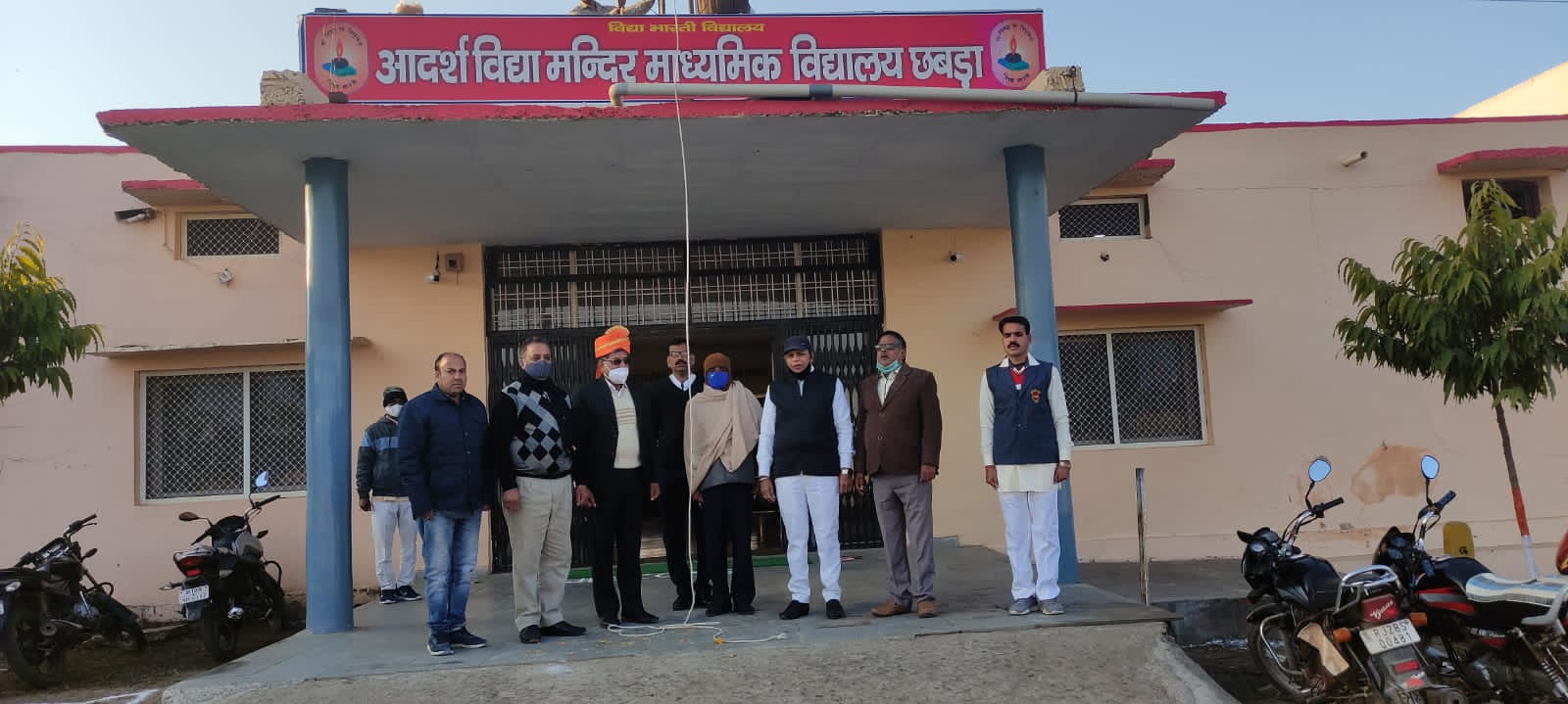 प्रधानाचार्य अमृत लाल मीणा ने जानकारी देते हुए बताया कि कार्यक्रम के मुख्य अतिथि सेवानिवृत्त प्रधानाचार्य श्री राजेंद्र कुमार गुप्ता अध्यक्षता मनीष गर्ग कोषाध्यक्ष आदर्श विद्या मंदिर समिति छबड़ा के आतिथ्य में संपन्न हुआ कक्षा दशम के भैया हरि ओम नागर द्वारा अंग्रेजी में गणतंत्र दिवस का भाषण प्रस्तुत किया गया एवं सहायक प्रधानाचार्य दुष्यंत जी आर्य ने हिंदी में गणतंत्र दिवस पर प्रकाश डाला प्रधानाचार्य अमृत लाल मीणा ने संविधान की प्रस्तावना प्रस्तुत की गणतंत्र दिवस के पावन अवसर पर विद्यालय प्रबंध समिति द्वारा संस्था के लिए उल्लेखनीय एवं सराहनीय कार्य करने के पर आचार्य ऋषभचंद नागर आचार्या सुमित्रा गुप्ता आचार्या संतोष वर्मा का स्मृति चिन्ह नगद पुरस्कार देकर सम्मान किया गया