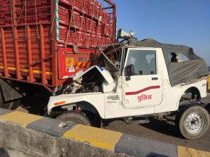 किशनगंज 2 घंटे पहले हुए एक्सीडेंट की सूचना पर मौके पर पहुंचा था कांस्टेबल, ट्रैफिक सुचारू करते समय तेज रफ्तार ट्रोले ने टक्कर मारी बारां जिले में किशनगंज कस्बे में राष्ट्रीय राजमार्ग 27 पर भीषण सड़क एक्सीडेंट में कांस्टेबल की मौत हो गई। एक्सीडेंट इतना भीषण था कि ट्रोले की टक्कर से पुलिस की गाड़ी चकनाचूर हो गई। करीब 10 फीट दूर तक कांस्टेबल को घसीटा हुआ ले गया। हादसे की सूचना पर एसपी कल्याण मल मीणा, एएसपी विजय स्वर्णकार समेत आला अधिकारी मौके पर पहुंचे। *दो घंटे पहले हुए एक्सीडेंट में किसान की मौत हुई थी, यातायात सुचारू करवा रहा था कांस्टेबल* किशनगंज थाना क्षेत्र के पार्वती नदी पुलिया पर तड़के 5 बजे करीब मंडी से अनाज बेचकर किसान ट्रैक्टर ट्रॉली से अपने घर लौट रहे थे। इसी दौरान पार्वती नदी की पुलिया पर पीछे से आ रहे एक मिनी ट्रक ने जोरदार टक्कर मार दी। हादसे में एक किसान की मौत हो गई जबकि तीन अन्य किसान घायल हो गए। सूचना पर किशनगंज थाना पुलिस ने मौके पर पहुंचकर मृतक और घायलों को एंबुलेंस की मदद से जिला अस्पताल पहुंचाया। कांस्टेबल विनोद अपने 4-5 साथियों के साथ राष्ट्रीय राजमार्ग का यातायात सुचारू करने के लिए मौके पर क्रेन की मदद से हटाने की कार्रवाई कर रहे थे।