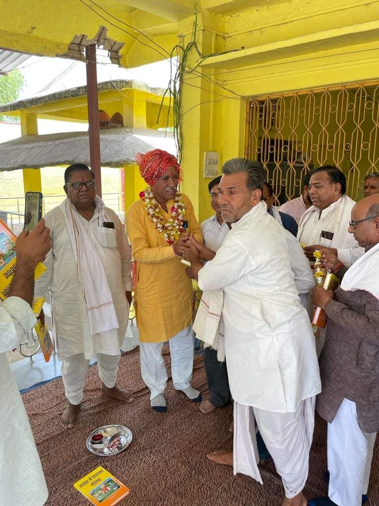 इस अवसर पर मुख्य ट्रस्टी श्री मानसिंह जी धनोरिया ,श्री ओमजी तिवारी जी ,गंगाधर जी मौर्य ,हरिओम जी सेन,सत्यनारायण जी गालव ,प्रीतम जी मेहता,मेघराज जी गुर्जर ,हरीसिंह जी गुर्जर,श्री प्रकाश जी गुर्जर परिव्राजक गणपत सिंह श्री राम जी मीना एवम शिक्षक रामकरण जी मेहता द्वारा पुस्तक के लेखक एवम गायत्री परिवार ट्रस्टी श्री छीतर लाल जी कसाना का तिलक लगाकर माला पहनाकर साफा बंधवाकर स्वागत किया गया सभी गायत्रीपरजनो ने बधाई एवं शुभकामनाए दी।